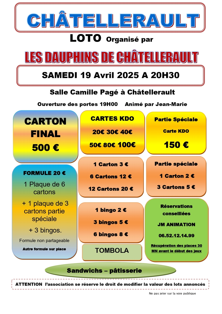 Le club organise un loto le samedi 19 avril ! C'est un événement important qui nous permet de financer du matériel, des compétitions et la formation de nos encadrants.