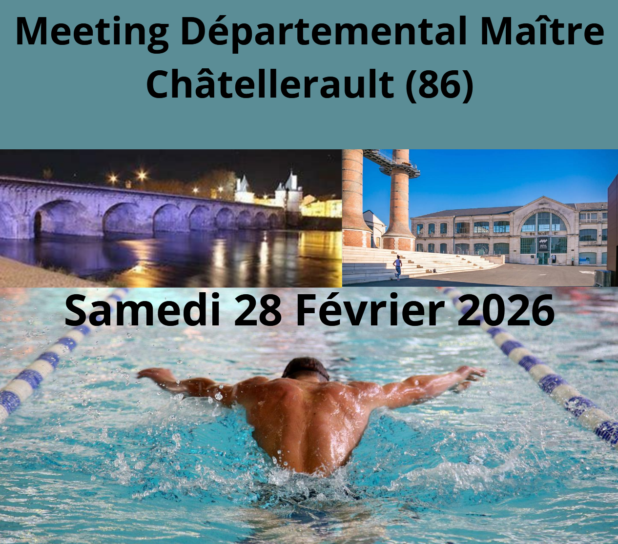 Le club des Dauphins de Châtellerault organise son 2ème meeting maîtres le samedi 28 février 2026 au Centre Aquatique de Châtellerault !